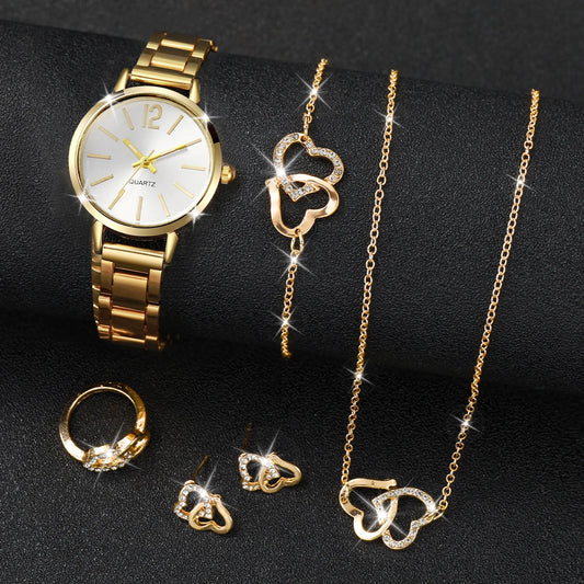 Timeless Gold Jewelry & Watch Set – 6-Piece Elegance for Her