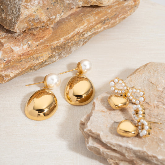 Golden Pearl & Heart Bow Earrings – Timeless Elegance for Every Occasion