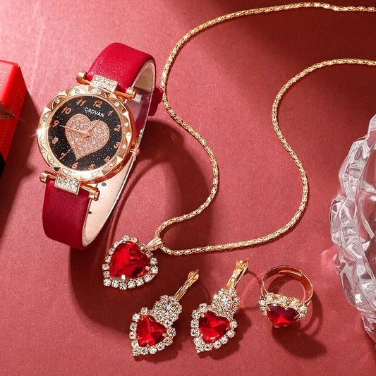 Heart Luxe Collection: Romantic 5-Piece Jewelry & Watch Set in Radiant Red