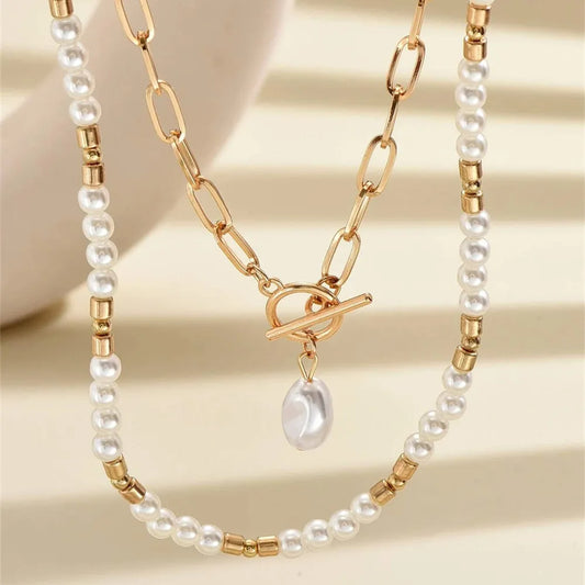 Layered Pearl & Gold Chain Necklace: Sophisticated Elegance for Every Occasion