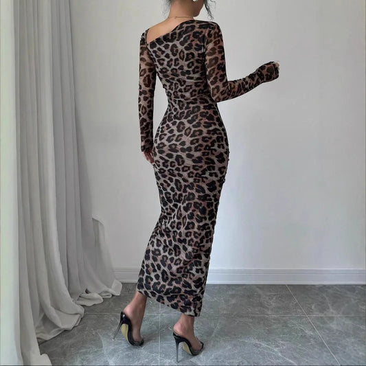 Leopard Print Ruffled Bodycon Party Dress